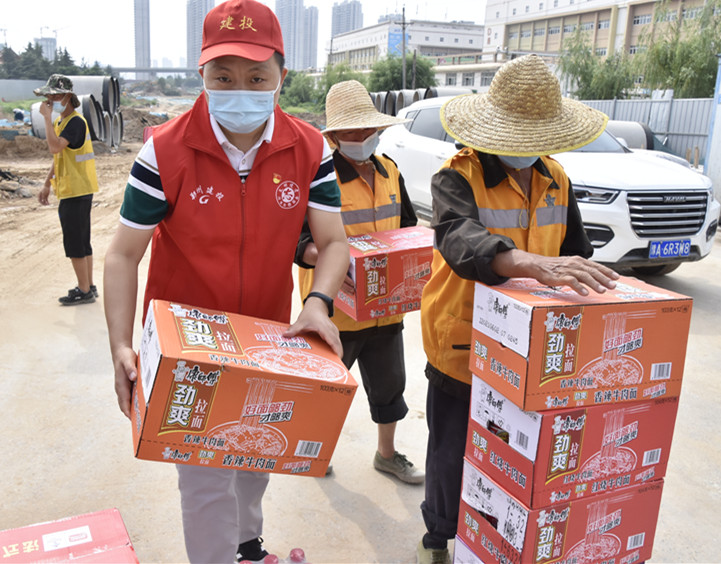 8月11日,集团领导带队到三全路重点民生工程项目,慰问一线工人,询问大家工作生活情境,送上餐点盒饭及防疫物资。