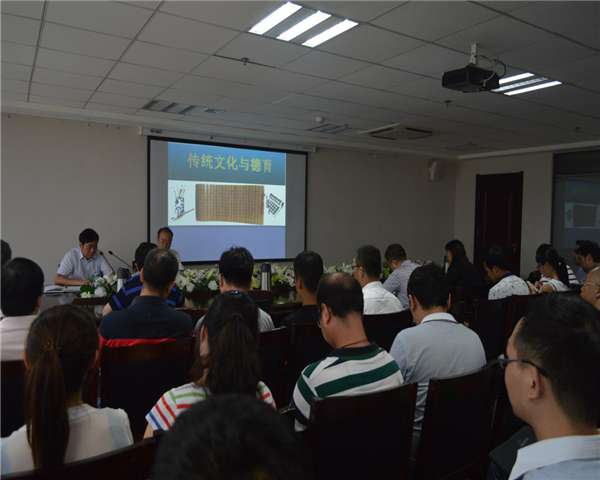 王教授的报告以“传统文化”为主线,详细阐释了“国学”与“传统文化”的内涵,以“儒家、道家、佛家文化与道德的关系”为切入点,以经典的古代诗歌为文本依托,以典型的古代文人经历为例证,结合现实生活,用生动的语言、图文并茂的方式进行讲解,对国学四库全书里的经部、史部、子部、集部中的经典历史人物、历史事件等方面做了深入浅出的剖析,全面阐释了国学对于传统文化提升的重要意义。