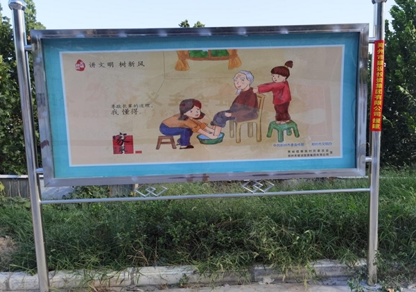 四、设置宣传载体,营造文明家园浓郁氛围。今年,华体会体育(hth)官方网站 -在线娱乐入口- HTH SPORTS 为郭岗村提供3万余元帮扶资金帮助其打造了精神文明专栏,分为家风家训(名人家风)专栏,“讲文明 树新风”(孝当先、传承家风)、“文明健康 有你有我”公益广告等内容,使社会主义核心价值观深刻融入到村民的生产生活和精神世界,形成全体村民的修身行善共识和明礼守法自觉,为促进郭岗村经济健康发展、构建美丽乡村、文明家园打下良好根基。