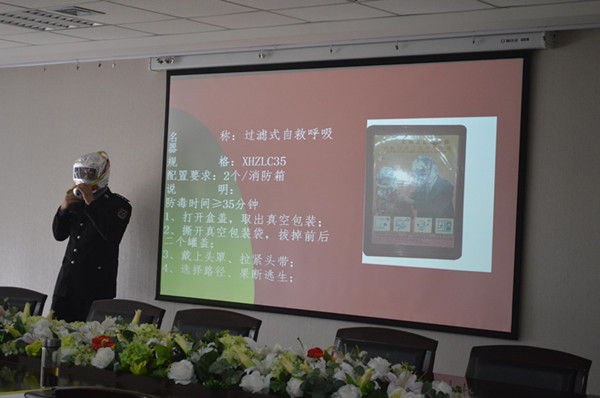 培训会上,蔡教员结合近几年的重大火灾案例,介绍了高层建筑火灾、电器火灾、燃气火灾发生初期的自救知识,大量残酷的事实让大家认识到了消防安全的重要性。同时,蔡教官还详细讲解了各种消防自救器材的用途、使用方法及注意事项,以避免在火灾发生时造成更大的危害。